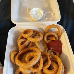 Ordered the small mouth burger which was a perfect size and very tasty. The fries were also very good.